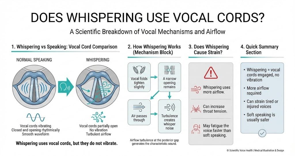 This guide provides a scientifically accurate, clinically aligned, and singer-friendly explanation of how whispering works, what it does to the vocal cords, whether it is safe, and what to do instead.