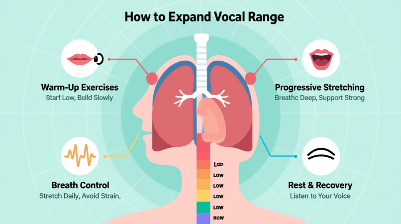 You can expand your vocal range by combining proper warm-ups, breath support, and targeted exercises for both higher and lower notes. Progress takes consistent practice, but most singers can add several notes to their range safely over time.