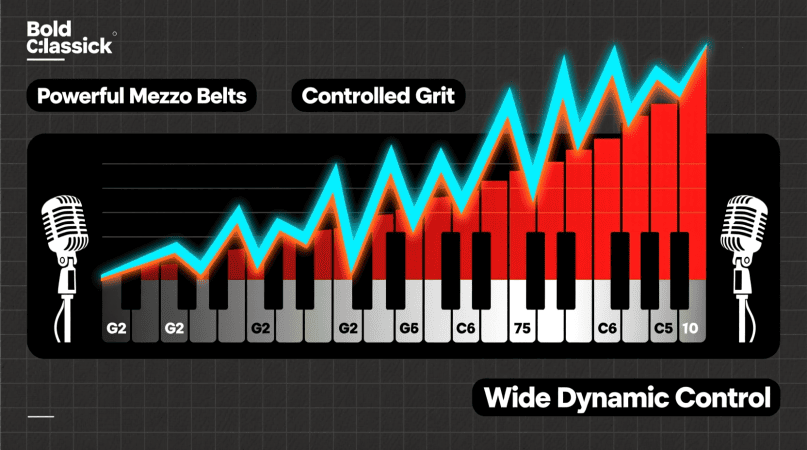 Her resonance is a mix of classical lift + rock chest voice — which makes identifying her exact register transitions harder than usual.