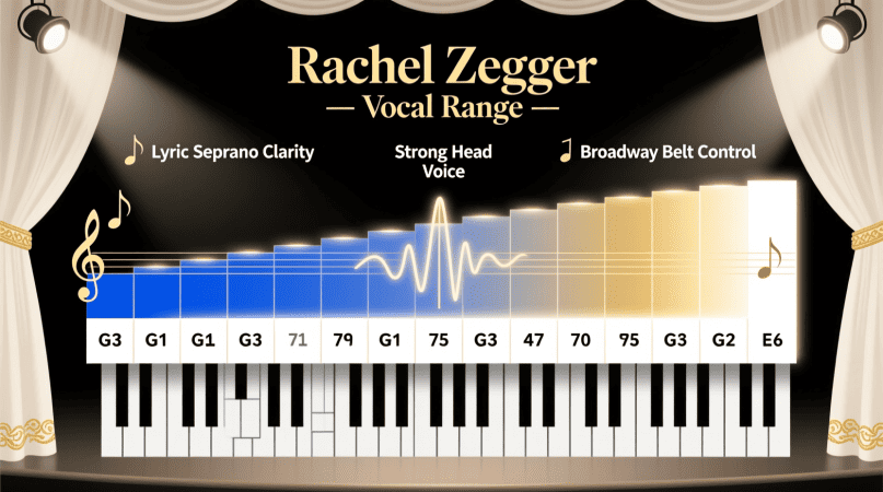| Chest/mix | C4–G5 | Strong, emotional, Broadway-ready |