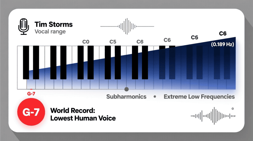 Tim Storms has a confirmed range of 10 octaves — more than double what most trained singers can achieve.
